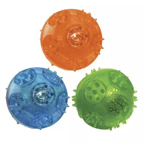 What’s that sound? Its Master Paws Chatter Ball! This innovative toy plays 10 different sounds and phrases at random upon impact and shuts off automatically once play is finished. Featuring a gum-massaging spikey texture and durable construction, the Master paws Chatter Ball is the toy that all the dogs are barking about! Comes in assorted colors.