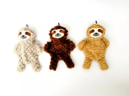 Stuffing free sloth dog toy with squeaker and crinkle